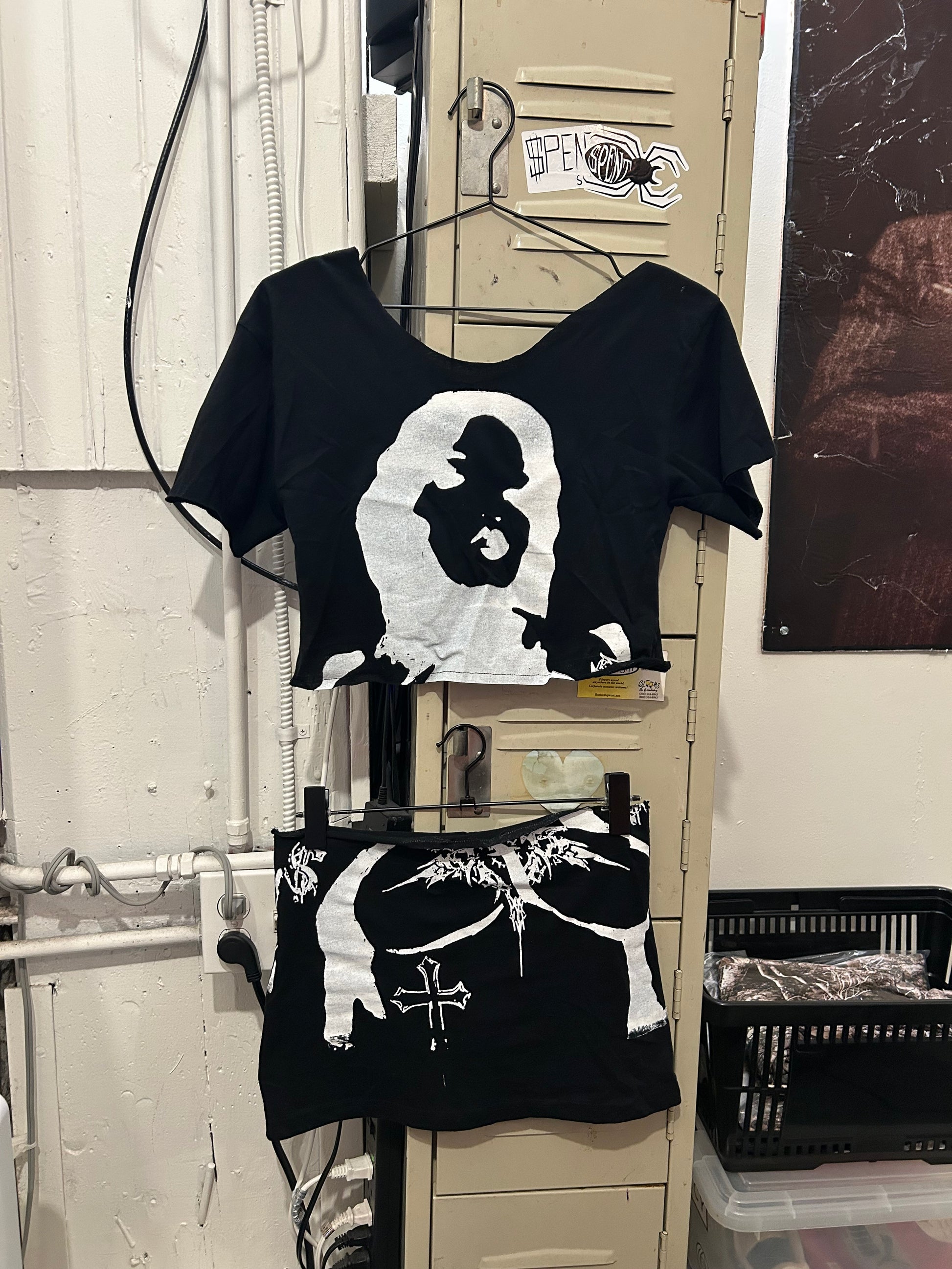 Mini shirt & skirt set made from a t shirt for our recent runway collection