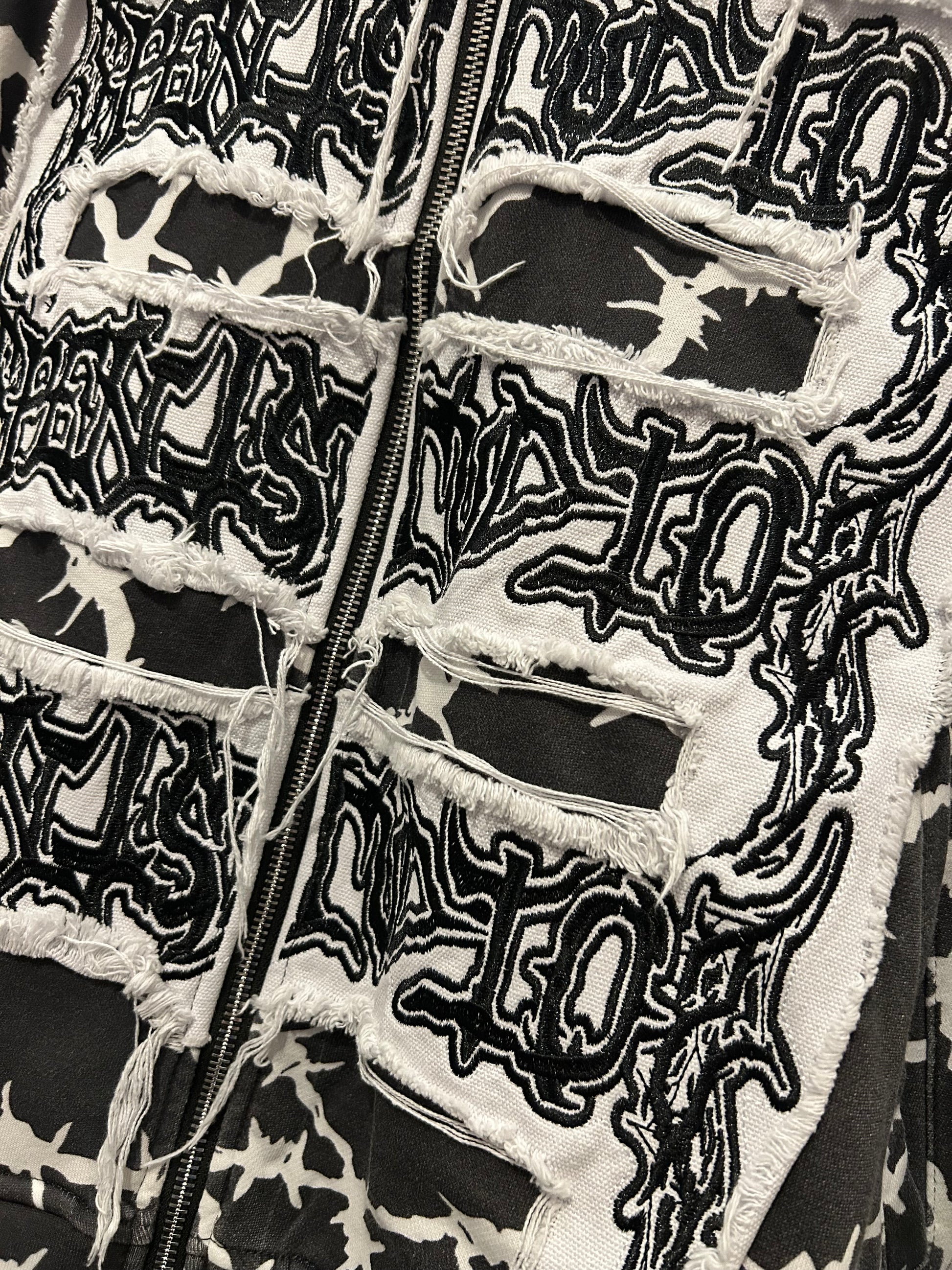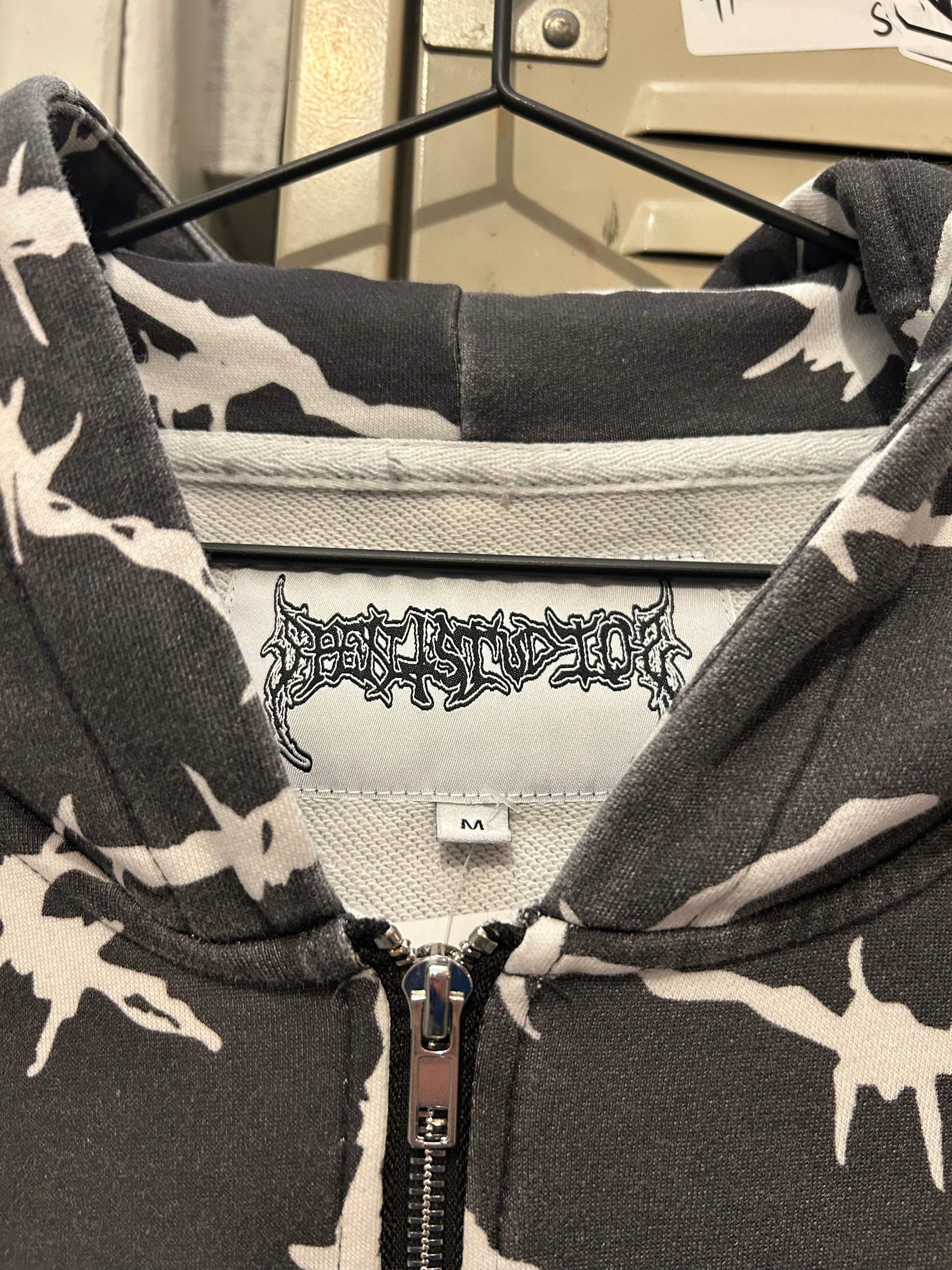 All over print barbed wire zip up with huge triple embroidered logo
