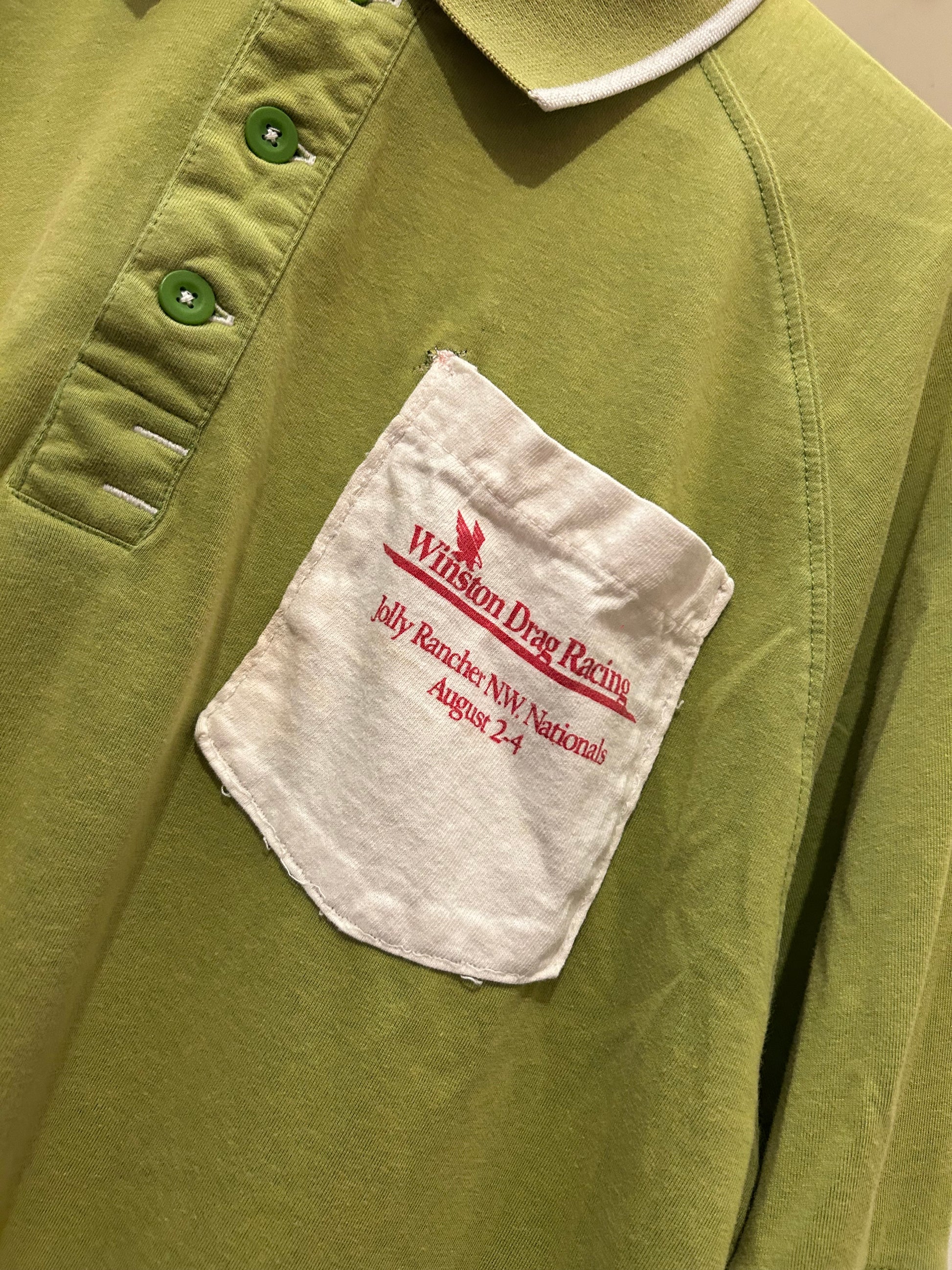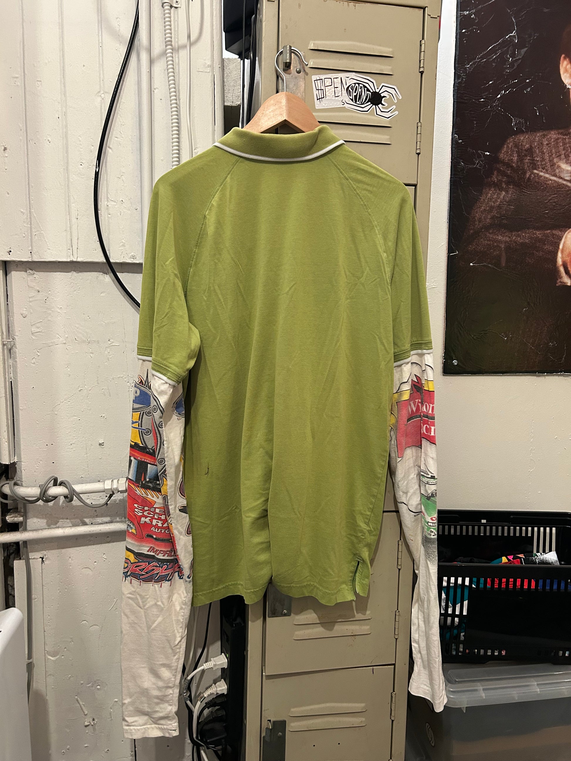 Vintage racing shirts cut & sewn into sleeves for this y2k polo shirt