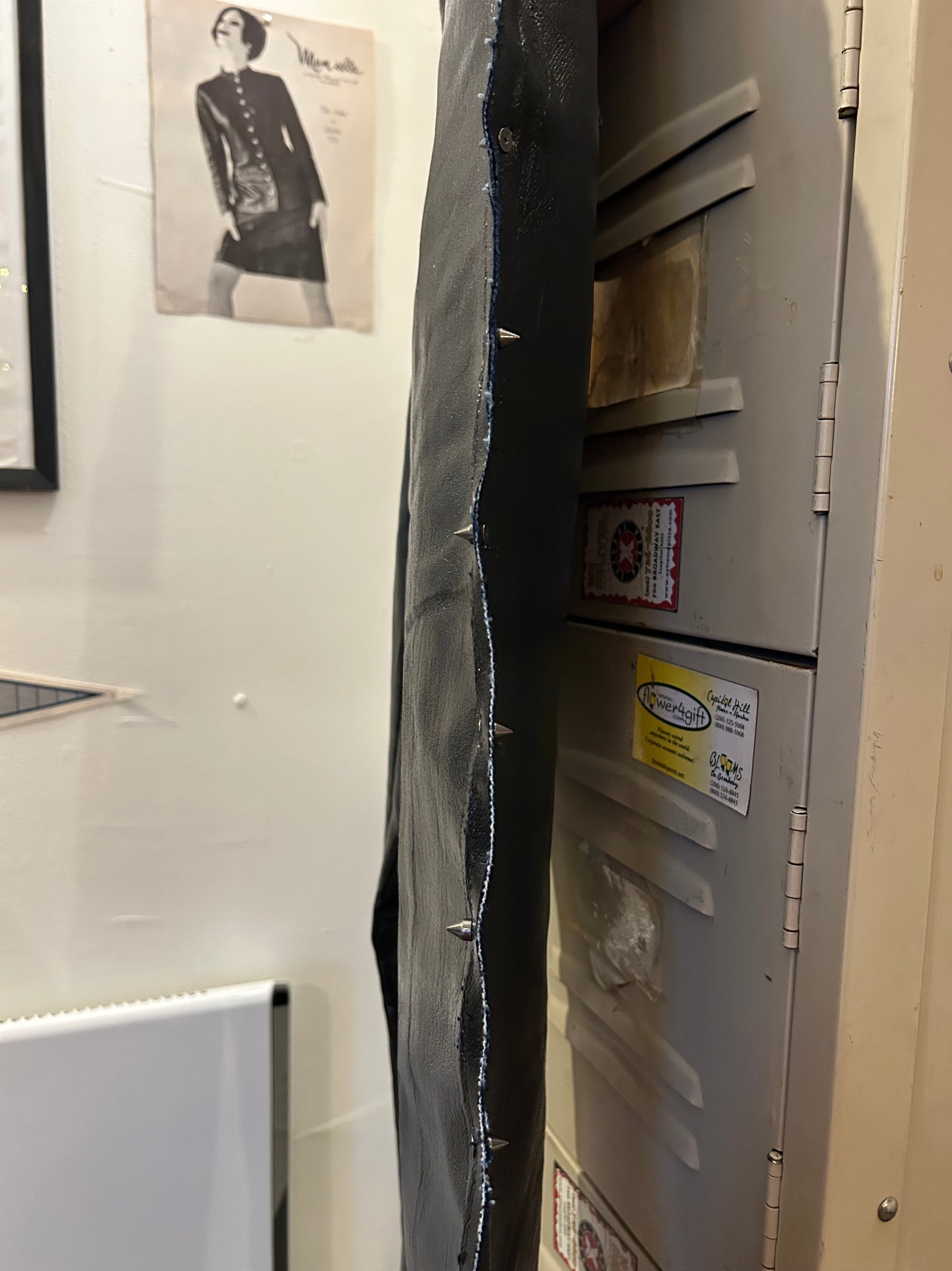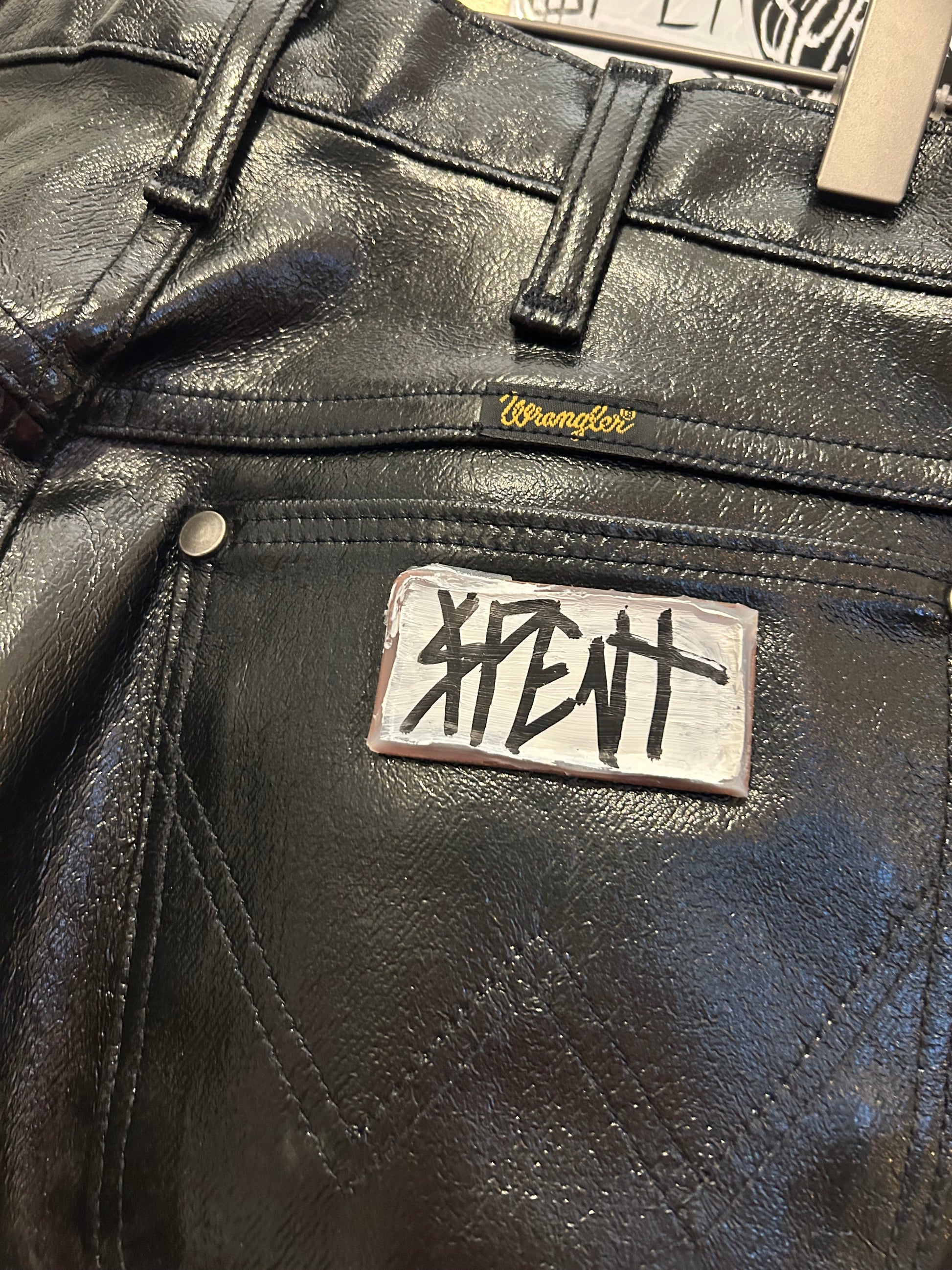 Paint/rubber material outer, denim interior. Vintage wranglers